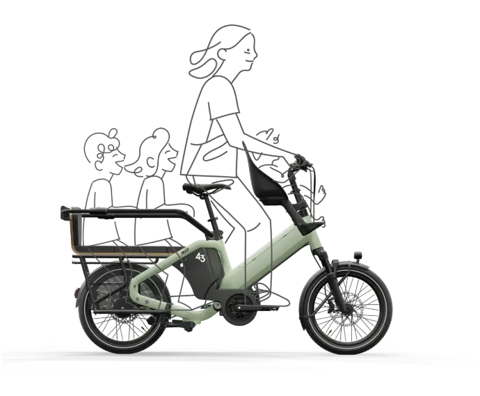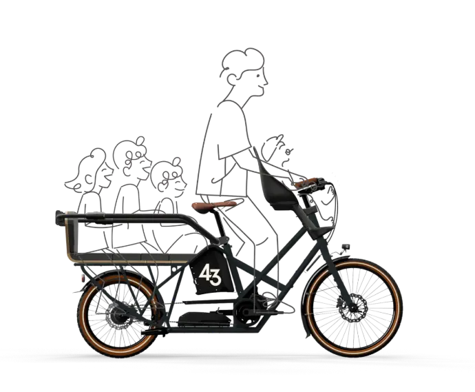 Bike43 est une marque belge spécialisée dans les vélos cargo familiaux. Leur concept fort : des vélos évolutifs, robustes, pensés pour accompagner les familles sur le long terme, tout en garantissant confort, sécurité, maniabilité et fiabilité.